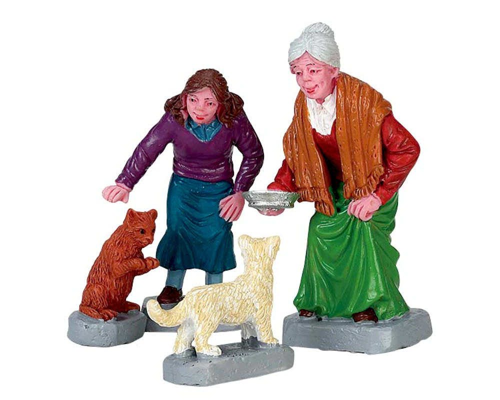 Idős hölgyek cicákkal Lemax 4 db-os szett